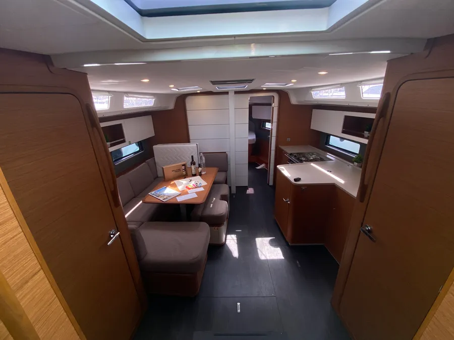 The Dufour 41 is a versatile and elegant cruising yacht that skillfully blends comfort, performance, and thoughtful design. A key advantage of this yacht is its rare and highly practical layout with 3 cabins and 3 bathrooms, offering exceptional privacy and convenience for families, couples, or groups of friends. The spacious and well-lit interior creates a welcoming atmosphere, while the smart galley and comfortable saloon make life on board easy and enjoyable. On deck, the Dufour 41 delivers smooth, confident sailing, with a balanced hull, efficient sail plan, and user-friendly layout that allows for relaxed handling even with a small crew. Stylish, comfortable, and cleverly designed, the Dufour 41 stands out as an excellent choice for stress-free cruising with maximum comfort.